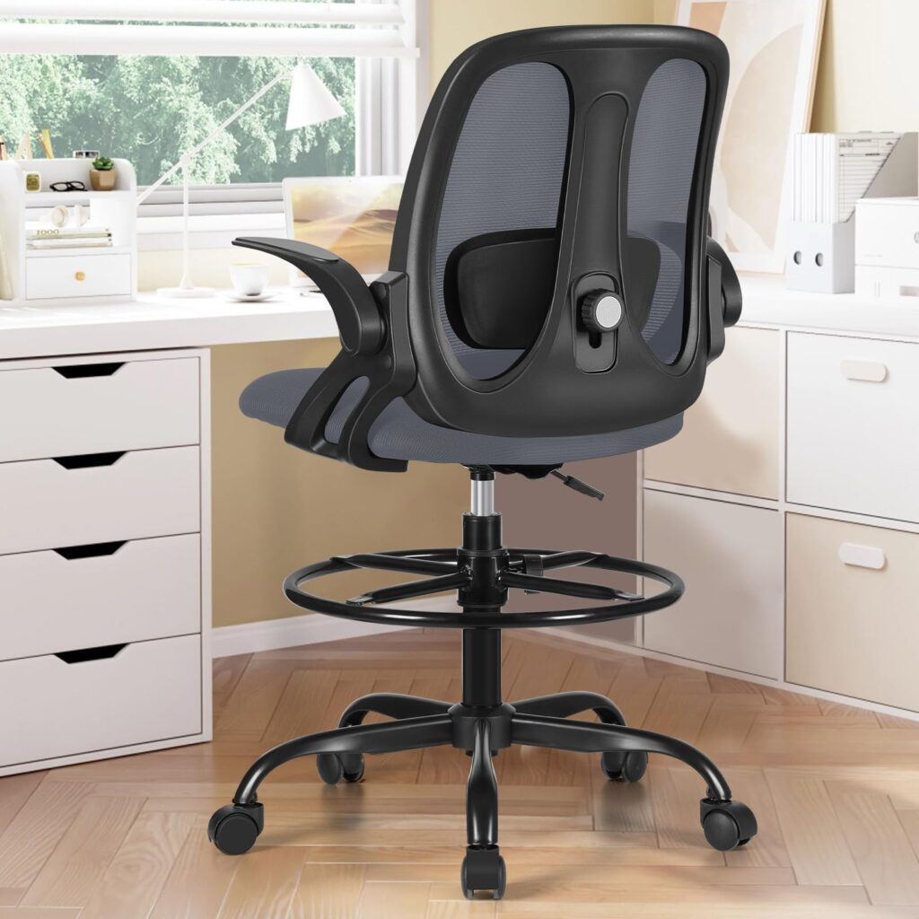 Razzor Ergonomic Office Chair, Desk Chair with Flip-up Armrests and Lumbar Support, 360° Swivel Chair with Footrest, Breathable Mesh Back