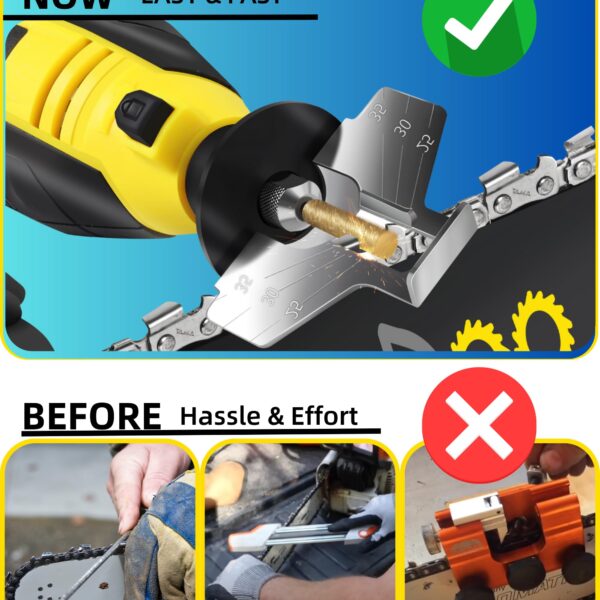 Chainsaw Sharpener, Electric Chainsaw Sharpener Tool with 6 Titanium-Coated Diamond Bits, Handheld Chain Saw Sharpener Kit for Most Chains, No Chain Removal