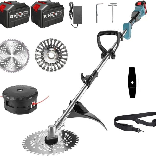 Battery Grass Trimmer with Battery and Charger, 3-in-1 Grass Trimmer with 2 Batteries 4.0 Ah, 18 V Brush Cutter with Weed Brush, 23 cm Cutting Diameter and Removable Pole, for Garden Trimmer