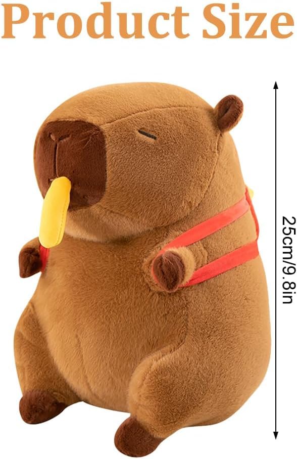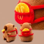 Милая плюшевая игрушка-капибара с картошкой фри во рту и рюкзаком в форме картошки фри. Мягкая, забавная и идеально подходит в качестве подарка.