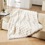 SOFT AND COMFORTABLE: Enjoy the luxurious comfort of a faux fur throw with an elegant bubble pattern that provides a velvety massage sensation. Wrap yourself in our fluffy blanket on the sofa while watching TV for ultimate relaxation after a busy day or a cozy evening.